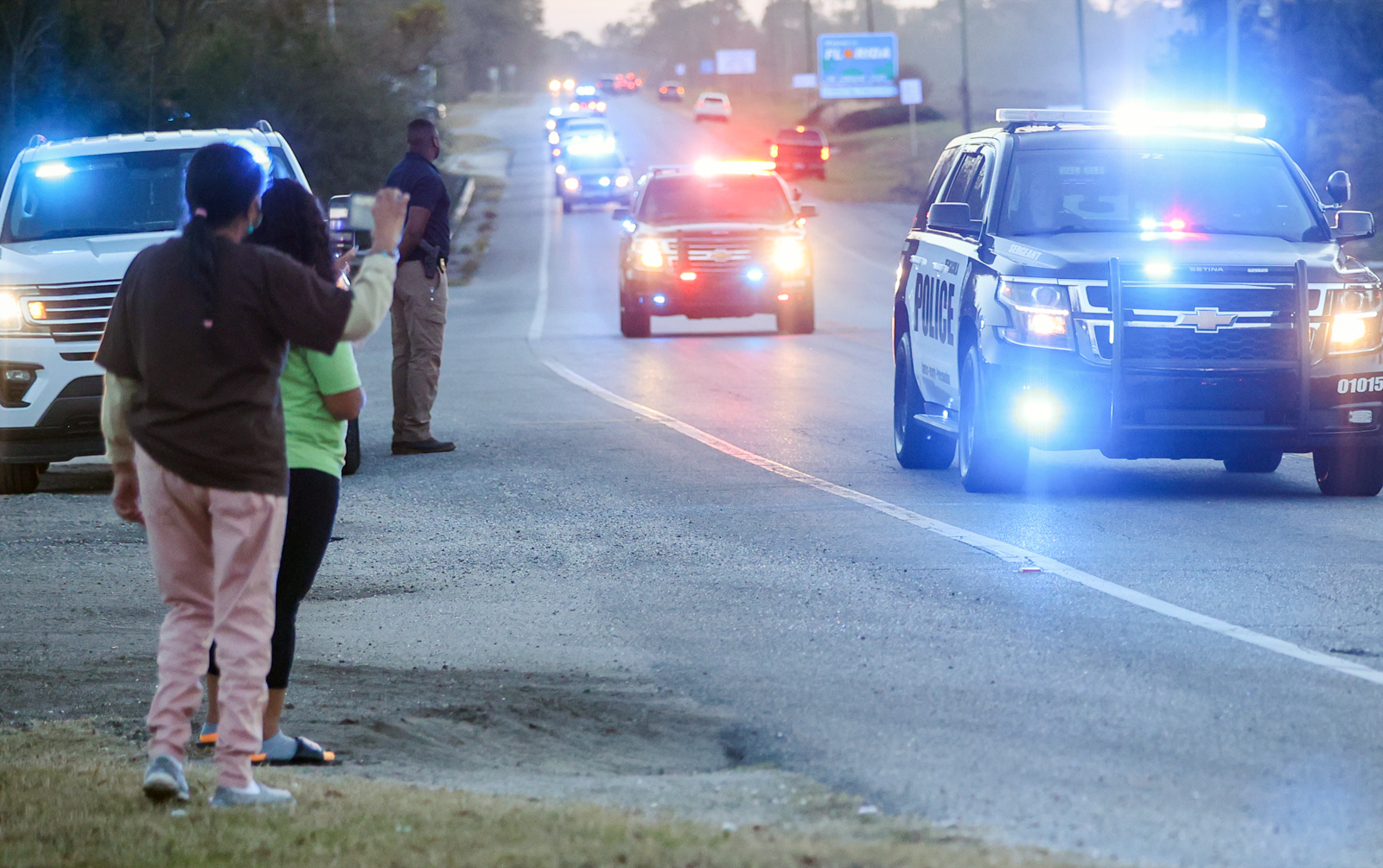 The body of a slain Alabama sheriff’s deputy was escorted through North Escambia Thursday afternoon on the way back home to Wilcox County, Alabama.