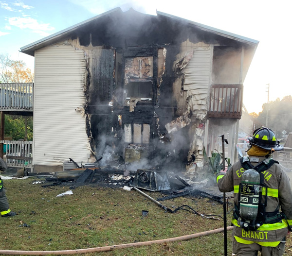 At 5:55 Wednesday morning, Escambia Fire Rescue responded to a multi-unit residential fire at the Aspen Village Apartments on East Johnson Avenue. Firefighters arrived to find flames coming from the two story complex. Six adults were displaced and are being assisted by the American Red Cross. There were no injuries in the fire, which was sparked from a fireplace inside one of the units.