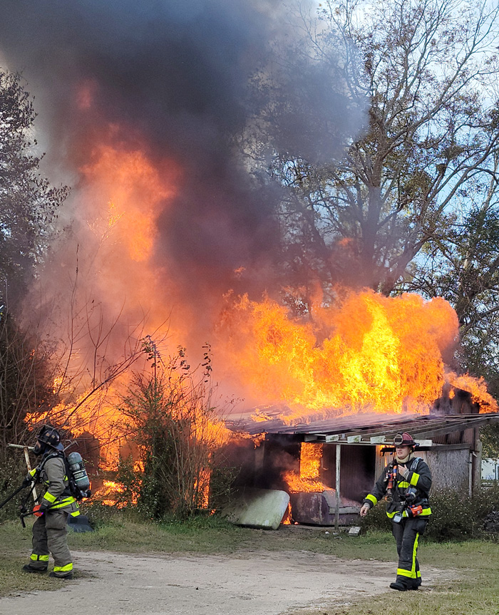 Flames were high above the roof of the structure when the fire was reported just after 10 a.m. in the 200 block of Louis Street. The shed was a total loss. After the fire was extinguished, it was determined that the structure was being used as a residence.