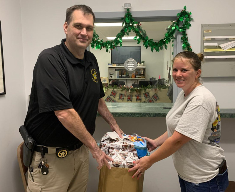 Chattin claimed the presents Monday morning at the Escambia County Sheriff’s Office for Dawson, and the Sheriff’s Office chipped in a gift bag full of goodies including a cup and official ESCO football.