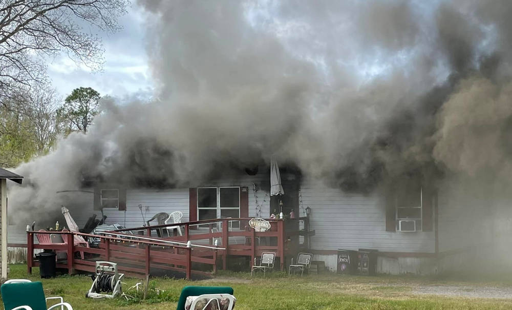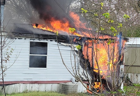 Fire heavily damaged a double wide mobile home in the Quintette community Monday morning