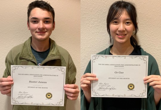 Tate High School recently announced their October Students of the Month. They are Juneau and Ge Gao. Photos for NorthEscambia.com, click to enlarge.