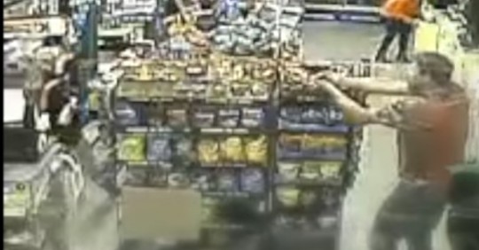 Both idiots need to go to prison for endangering the lives of every person in that store at that time.
