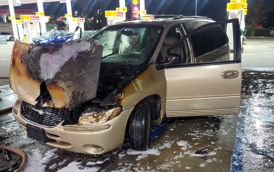 The fire was reported about 5:40 p.m. at the Circle K at 2200 South Highway 29 at Kingsfield Road. The Ensley Station of Escambia Fire Rescue quickly extinguished the engine compartment fire in the Chrysler van. The van burned near, but not under, the canopy with the gas pumps.
