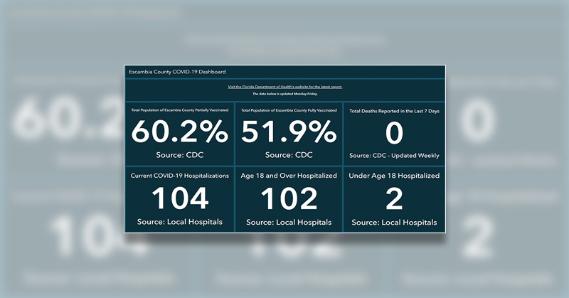 “As we mentioned previously, we will reimplement the COVID-19 dashboard if local hospitalizations reach 50 or higher,” said Escambia County Public Safety Director Eric Gilmore. “Unfortunately, we have reached over 100 hospitalizations in a quick time frame. We are going to continue to monitor the local hospitalizations daily, as well as provide weekly updates to the death count provided by the CDC. Our hope is that we see this number drop below 50 again very soon.”