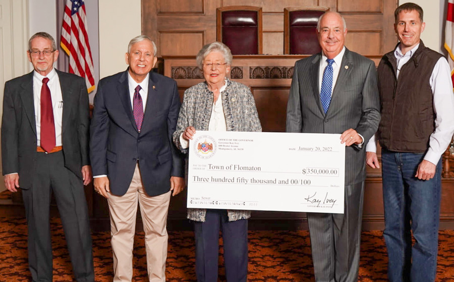 Alabama Gov. Kay Ivey has awarded a $350,000 grant to Flomaton to renovate and upgrade the town’s wastewater treatment facility.