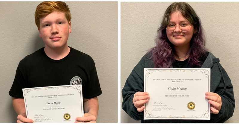 Tate High School recently named Evan Myer and Shyla McRoy as Students of the Month for November. Photos for NorthEscambia.com, click to enlarge.