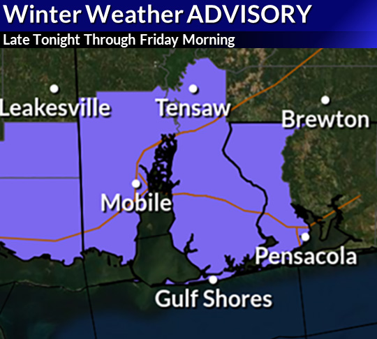 The National Weather Service has issued a Winter Weather Advisory from midnight Thursday through noon Friday.