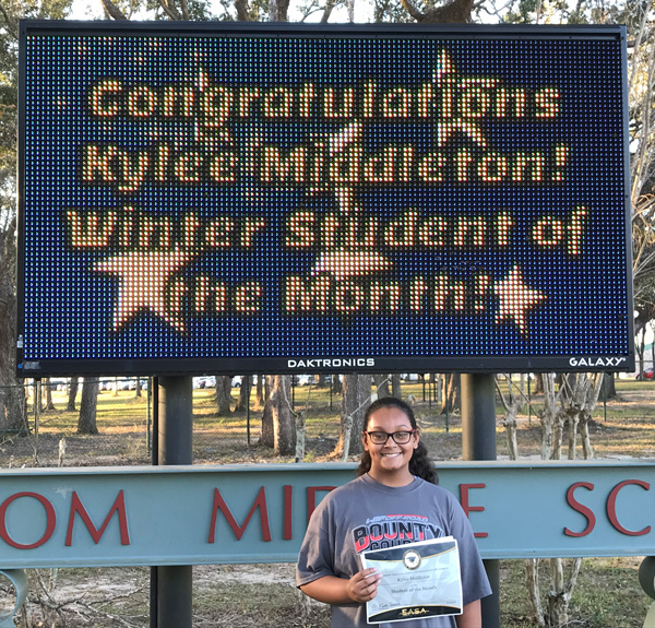 Ransom Middle School has named their Winter Students of the Month for November and December. They are Kylee Middleton and Aaron Holt. Photo for NorthEscambia.com, click to enlarge.