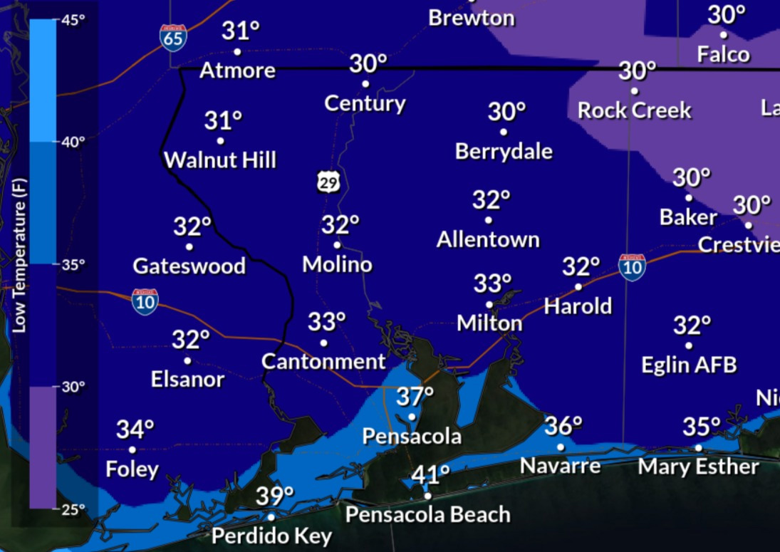 Clear, Freezing Temps In North Escambia Tonight