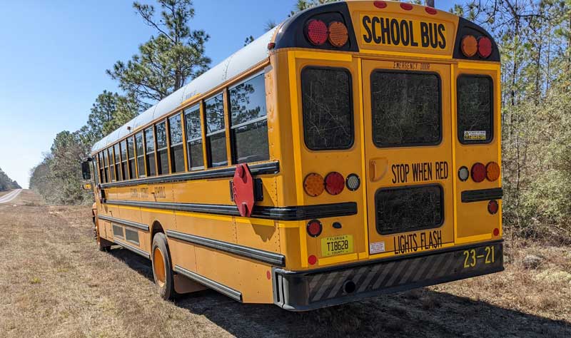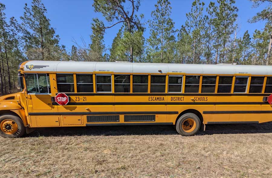 There were no students on the Escambia County school bus at the time of the 9:10 a.m. crash on Highway 164 about 1.3 miles east of North Pine Barren Road.