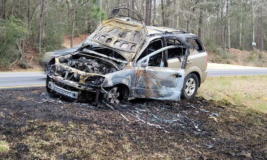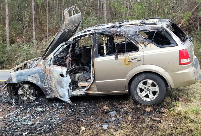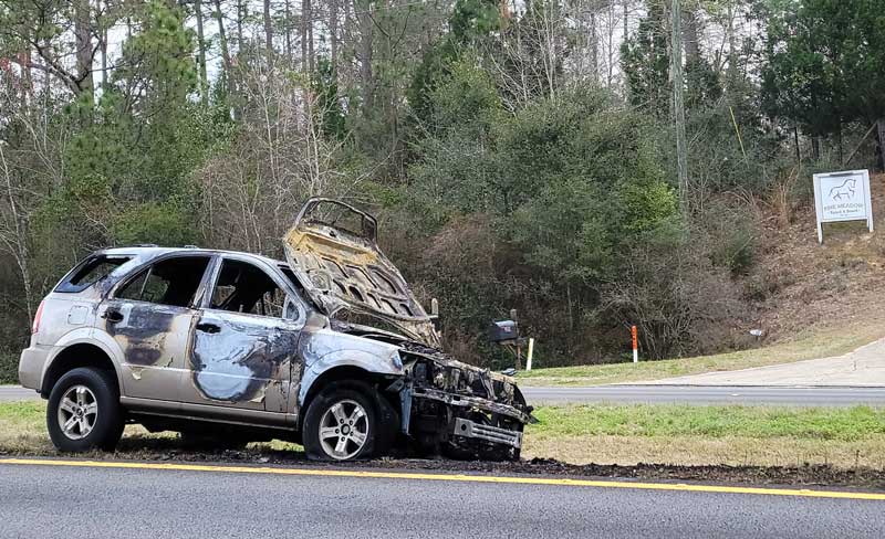 There were no injuries reported. The vehicle fire and a resulting grass fire were extinguished by the Molino Station of Escambia County Fire Rescue.