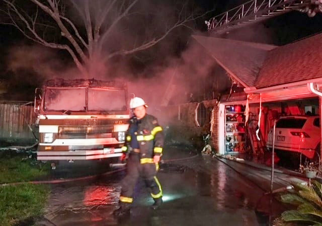 Escambia County Fire Rescue arrived to find the RV fully engulfed in flames and that fire had spread to the attic space of a nearby home in the 4400 block of Cedarbrook Drive off Klondike Road.