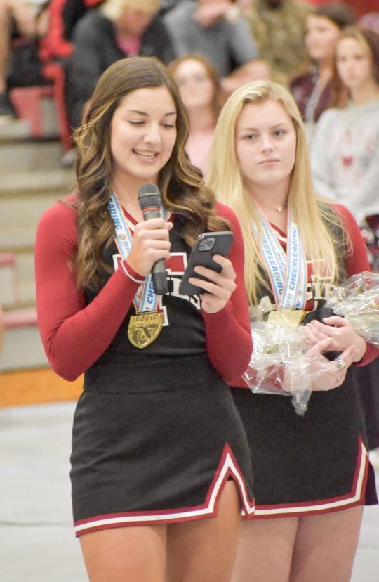 The Tate High School cheerleaders were recognized at the school after winning the 2022 FHSAA Small Varsity competitive cheerleading championship.
