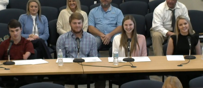 Pictured above: (L-R) Tate High School Agricultural Educator and FFA Advisor Austin Courson, students Dawson Guy, Jaxson Stafford, Sarah Alexander and Darby Phillips address the Escambia County School Board. Photos for NorthEscambia.com, click to enlarge.