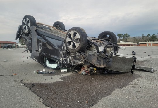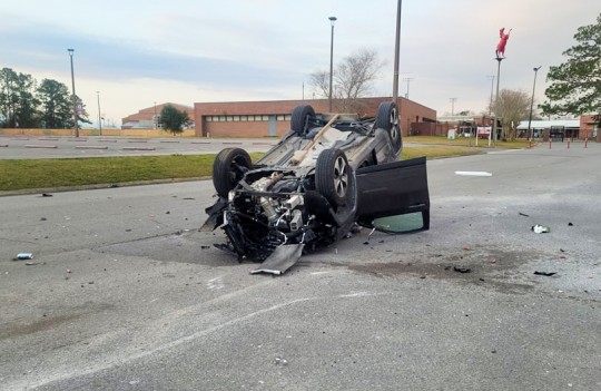 Vehicle Overturns Multiple Times Into Tate High School Parking Lot