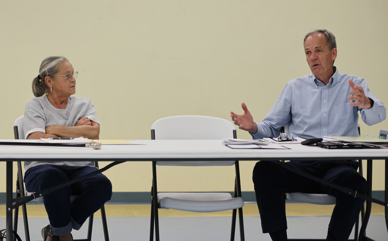 Pictured top: Consultant Buz Eddy speaks to the Century Charter Review Committee as chairperson Mary Bourgeois listens. NorthEscambia.com photo, click to enlarge.