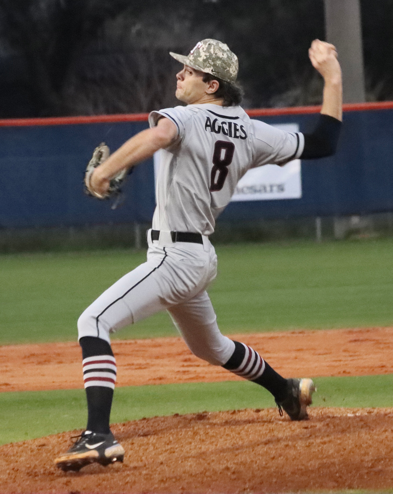 Brady Smith and Tyler Folmar both had a couple of hits for the Aggies. Brayden Beck and Zane Warrington added one hit each.