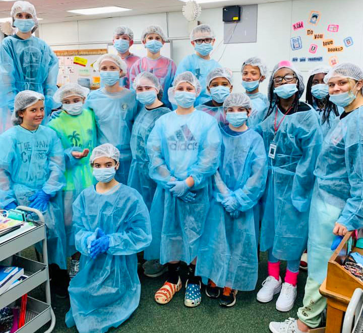 In the “Room 41 Surgical Center’, students wore full surgical gear and called each other “doctor” as they were tasked with several surgeries. The organs were created out of playdough and the tools were toothpicks, but students were able to learn and have fun doing it.