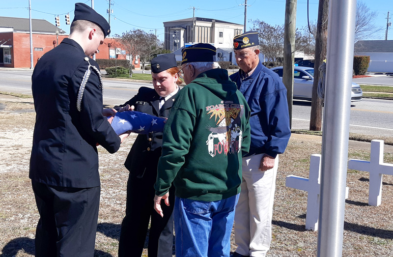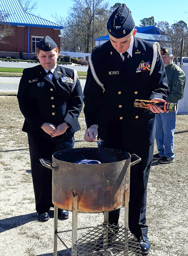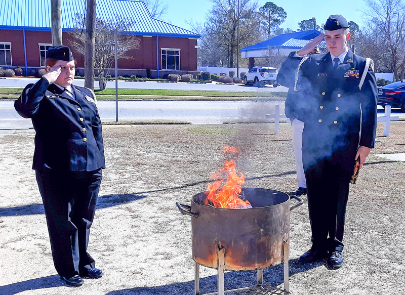 The Northview High School NJROTC recently participated in a cooperative flag retirement with the Billy Glenn Rushing Post 90 of the American Legion in Atmore. Photos for NorthEscambia.com, click to enlarge.