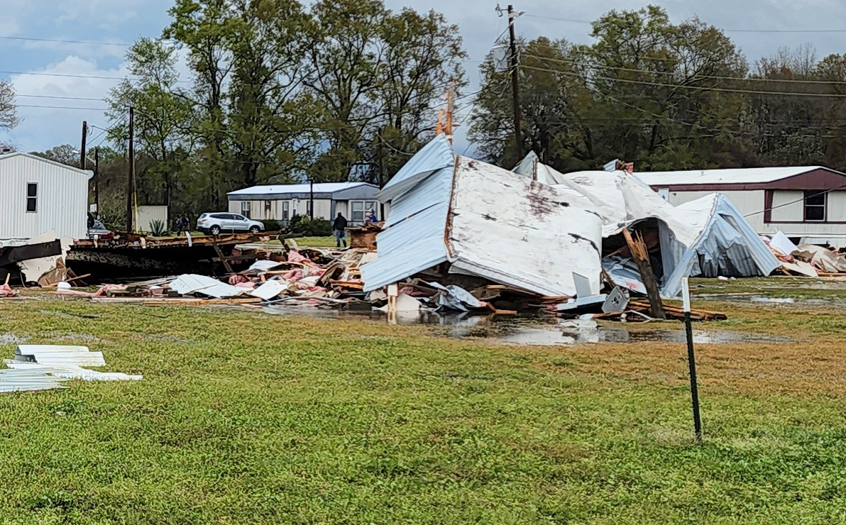 “We have one guy that was in his mobile home when the storm hit. He was asleep. He said when he woke up, he was in the woods,” Jackson said. “Obviously the Good Lord was looking out for him.”