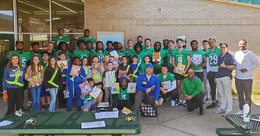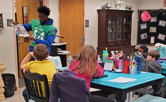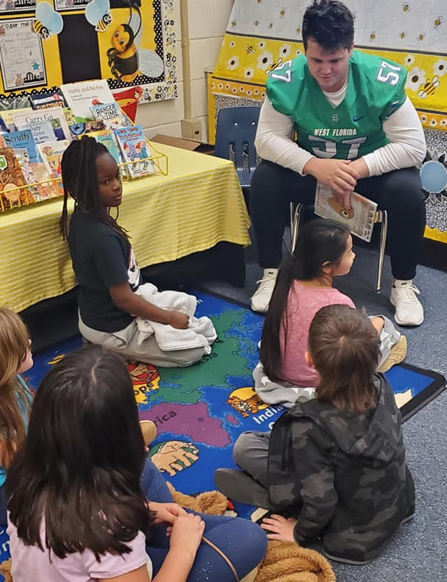 UWF Argos Football Team Reads To Pine Meadow Elementary Students