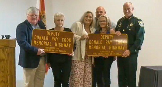 “His name is engraved on the Law Enforcement Memorial in Washington D.C., and he is recognized at the Escambia County Sheriff’s Office, but we have reached a point in time where our citizens need to be reminded daily of the sacrifice our officers make, especially those who have made the ultimate sacrifice. One way we could do this is to name an appropriate section of Interstate 10 in memory of Deputy Donald Ray Cook,” retired FDLE Agent Ed Hudson of McDavid wrote in an email to Senator Doug Broxson’s Office asking for the renaming.