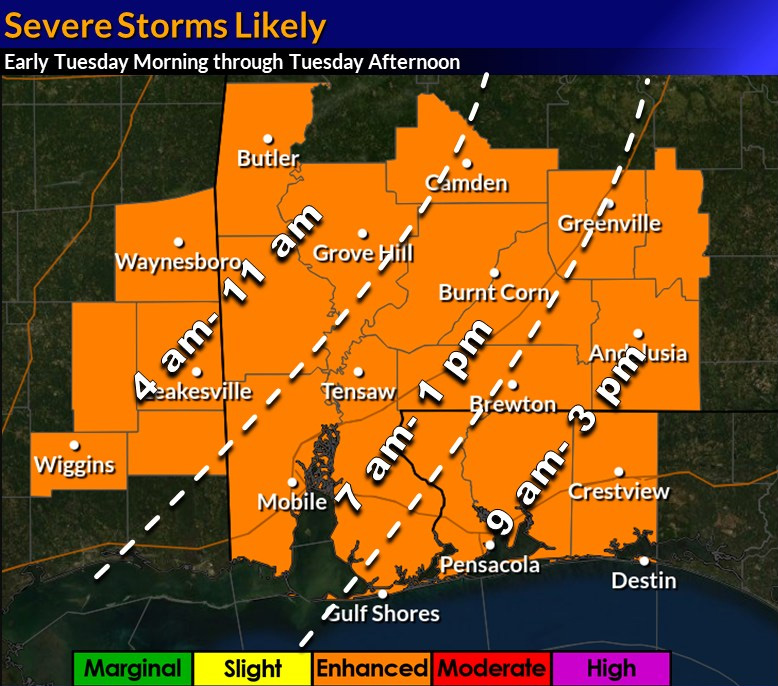 The potential for another round of severe weather has increased to enhanced (3 of 5) on Tuesday.