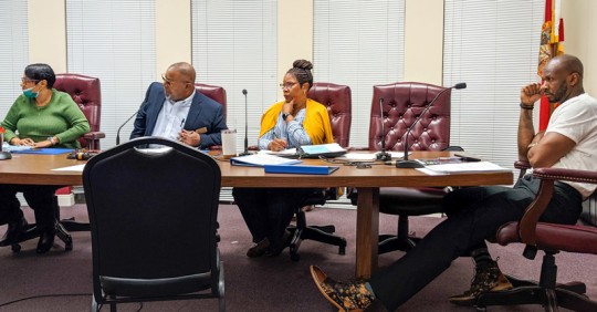 Pictured: The Century Town Council Tuesday night: (L-R) Sandra McMurray Jackson, Luis Gomez, Jr., Dynette Lewis and James Smith. Council member Leonard White participated by Zoom. NorthEscambia.com photo, click to enlarge.