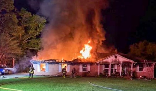 Firefighters arrived to find heavy fire coming from the garage area of the approximately 2,700 square foot brick home. A large portion of the home’s roof collapsed during the fire.