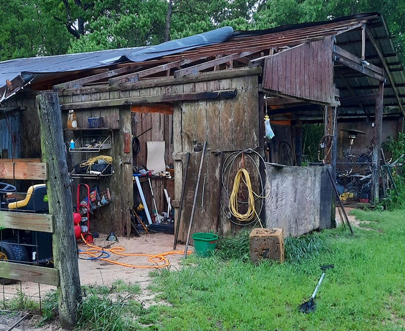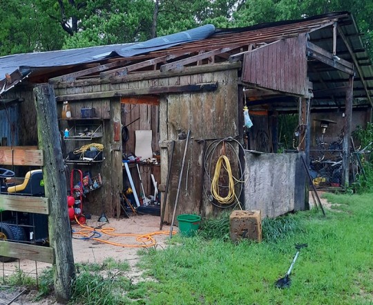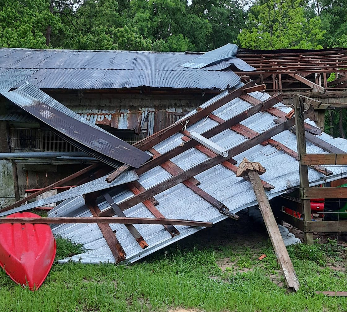 In Cottage Hill, the wind took the metal roof off a pole wooden barn (pictured above and first below).