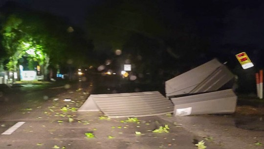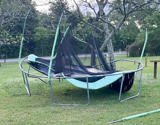 On North Chipper Road, the wind downed trees and tossed a trampoline (pictured below). A trampoline was also blown and became lodged against a retaining wall on the I-110 ramp to Airport Boulevard.