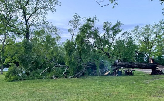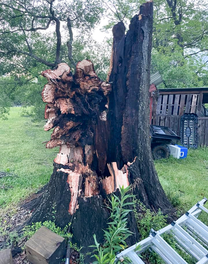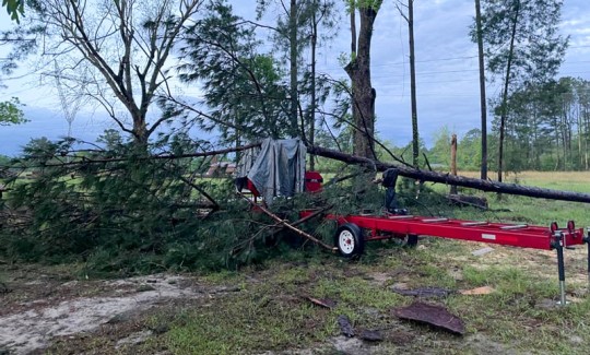 A huge oak tree was torn in half, but thankfully, it didn’t hit my house, even though the tree is about ten feet from my home. Plus, it was 9 dogs and 15 cats in my bed bad. I live in Cottage Hill.