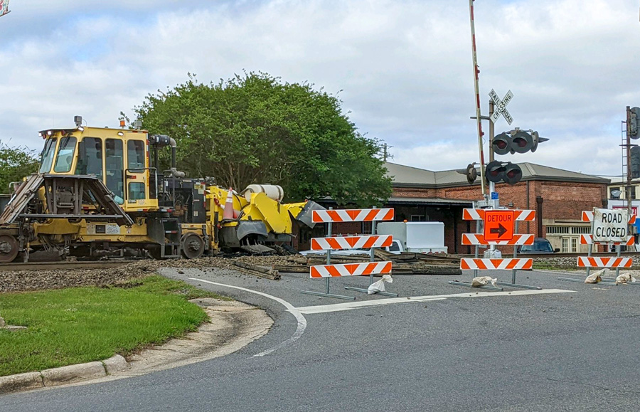 The Trammel Street crossing in Atmore was closed Monday afternoon. CSX has nor provided any schedule for other crossing replacements.