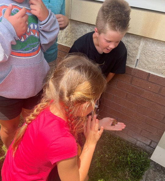 Pictured: Students enjoy butterflies at Kingsfield Elementary School (above) and Molino Park Elementary (below). Photos for NorthEscambia.com, click to enlarge.