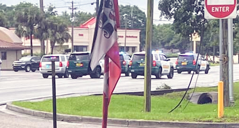 Pictured above and below: A man was shot and killed at the Circle K at the corner of Highway 29 and West Roberts Road about 7:30 Monday morning. Pictured first below: The suspect was taken into custody minutes later on Palafox Street at Nine Mile Road. Photos by Jason Robbins/WEAR 3 and others for NorthEscambia.com, click to enlarge.