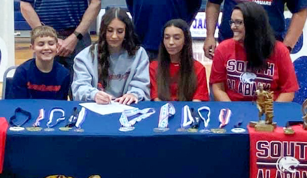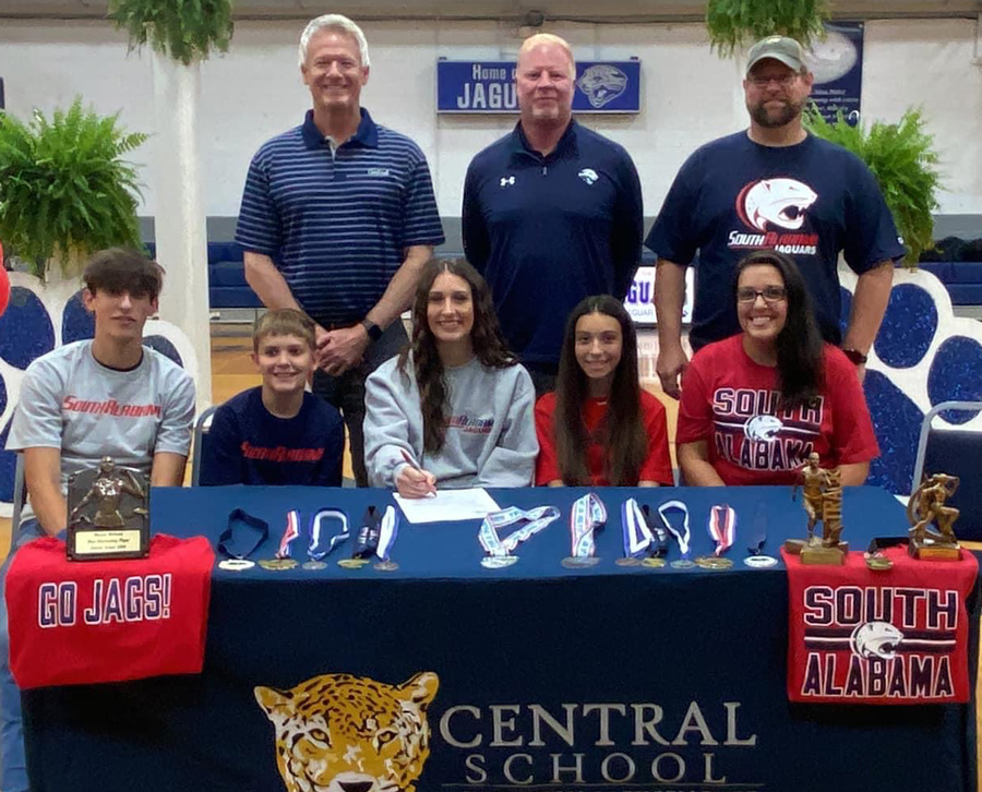 Morgan Mathews of Central School has signed to continue running hurdles and track and field at the University of South Alabama in Mobile. This marks the first time a Central School athlete has ever signed a letter of intent to continue a sport at a D1 level. Photos for NorthEscambia.com, click to enlarge.