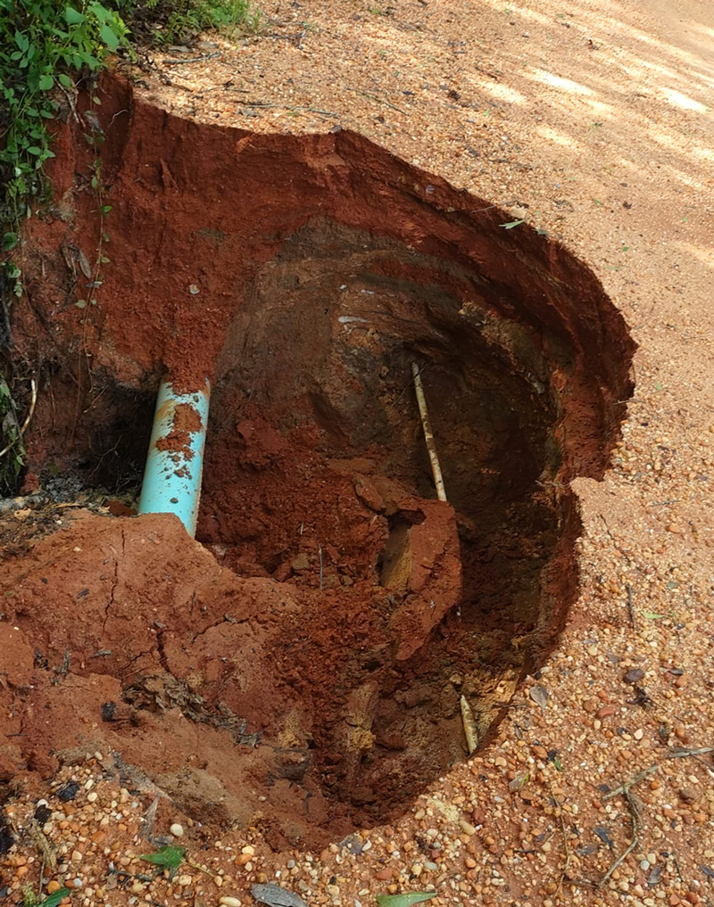 Heavy rains the past few days washed away a portion of a dirt road in McDavid.