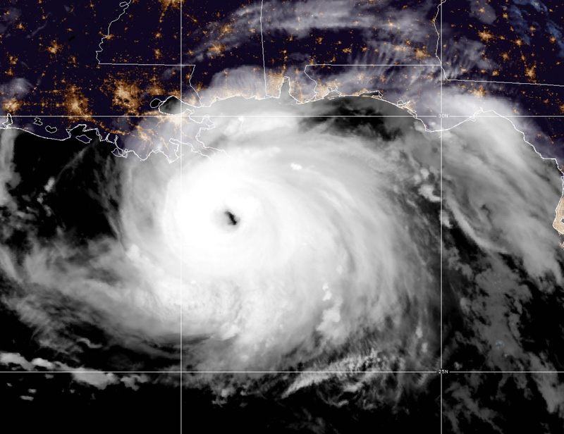 Pictured below: Visible satellite image of Hurricane Ida approaching land in the Gulf of Mexico at 4:10 a.m. on August 29, 2021.