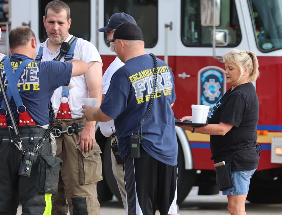 And passing out sweet iced tea in foam cups. With no lids; firefighters are adults, you know.