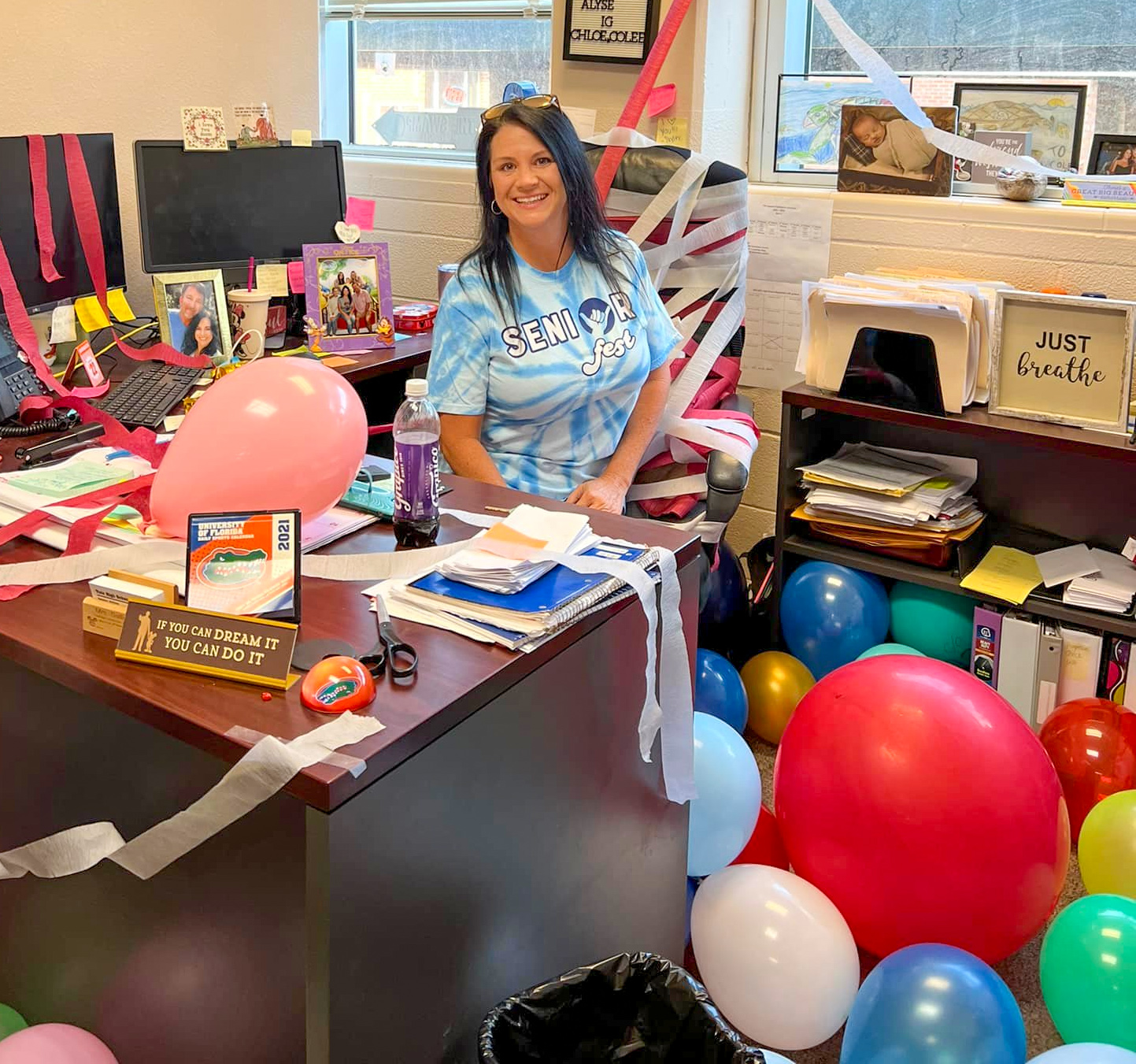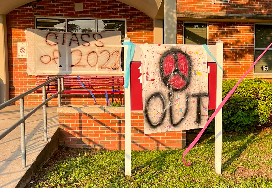 They filled hallways with thousands of balloons and left a few Class of 2022 signs around the campus, including a “Peace Out” sign outside.