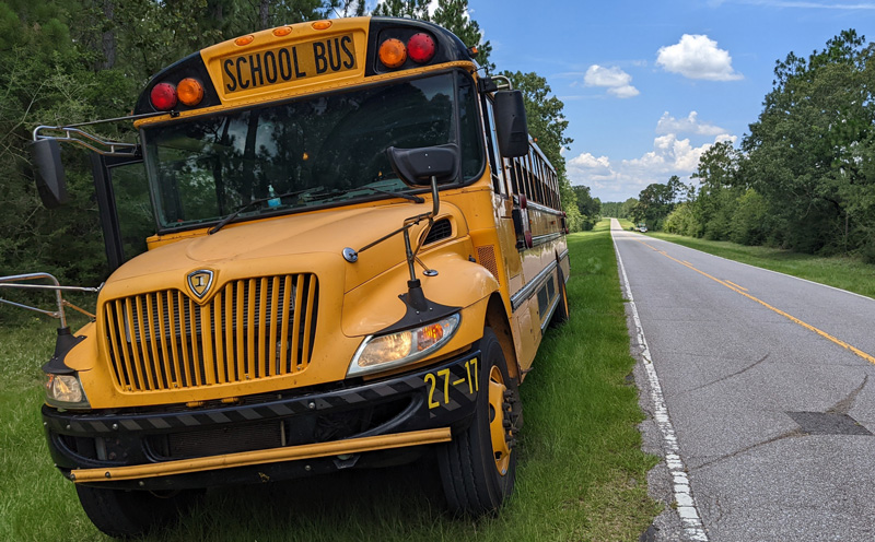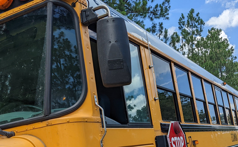 Editor’s note: The mirror on the school bus had been pulled back into position prior to these photos.
