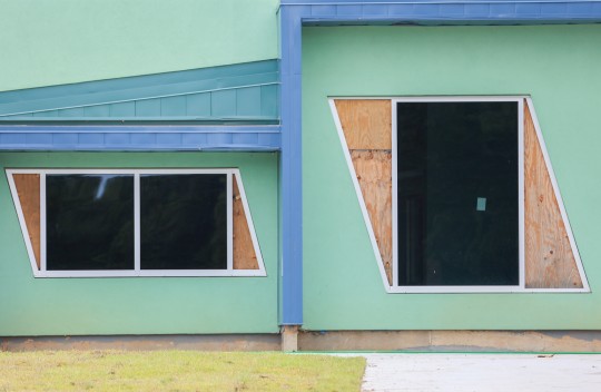 “We wish it was coming together a little bit faster, but like every other project we’re doing right now, we are waiting on materials,” Moreno said. One of the biggest delays has been windows; several triangular window openings around the building are covered with plywood.