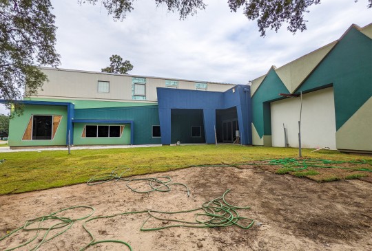 At 12,000 square feet, the library is located on about four acres at 6425 Mobile Highway, near Bellview Elementary and Bellview Middle schools. About 2,000 square feet of the structure is a former bank; the remainder is a new addition.