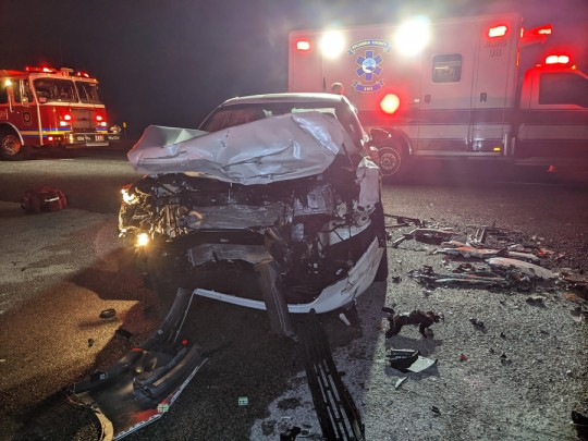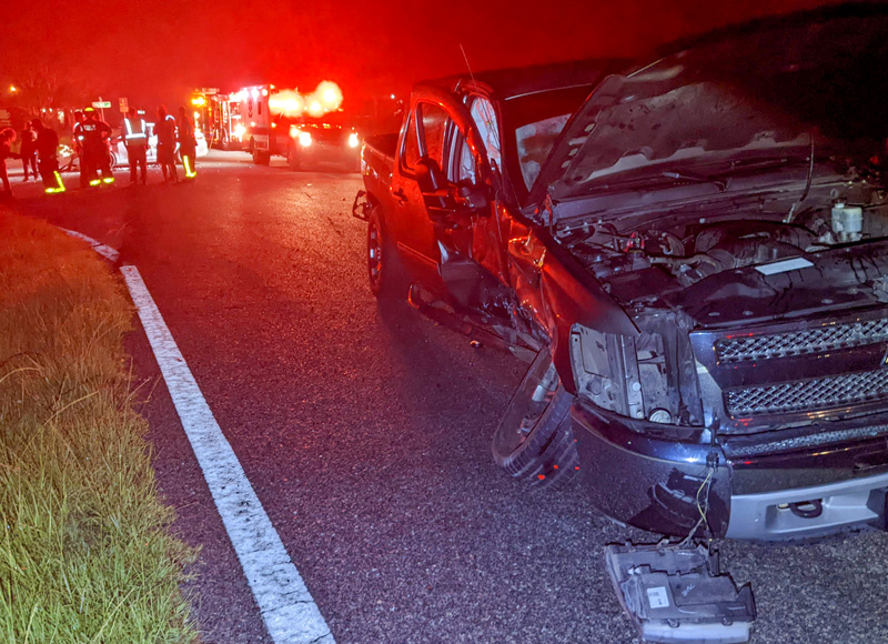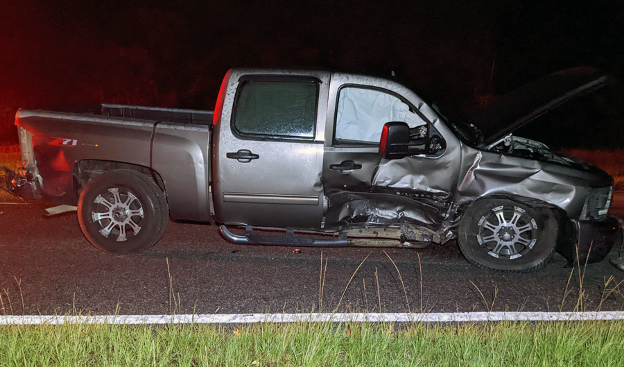 A Kia Optima and Chevrolet pickup truck collided about 9:35 p.m. on Highway 29 at Highway 164.