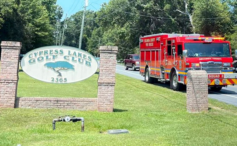 Pictured: An Escambia County Fire Rescue Special Operations Team stands by at the Cypress Lakes Golf Club on Old Chemstrand Road. NorthEscambia.com photos, click to enlarge.