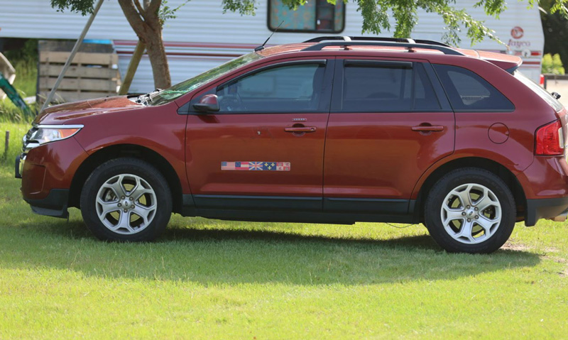The SUV continued off the roadway and down a slight hill where it was stopped near a residence.