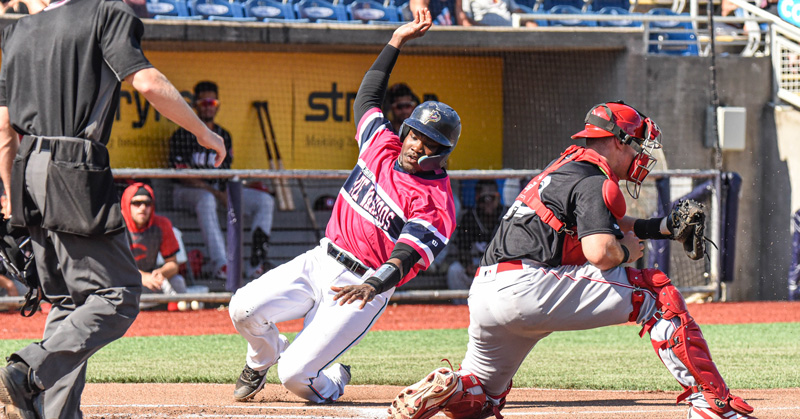 J.C. Keys (L, 1-2) allowed singles to Ray-Patrick Didder and McIntosh before departing, and Stevie Branche loaded the bases with a walk to Conine before Hollins lifted a fly ball down the right field line that was misplayed into a bases-clearing double. J.D. Orr followed with an RBI single, and scored thanks to his second of three stolen bases and a wild pitch.