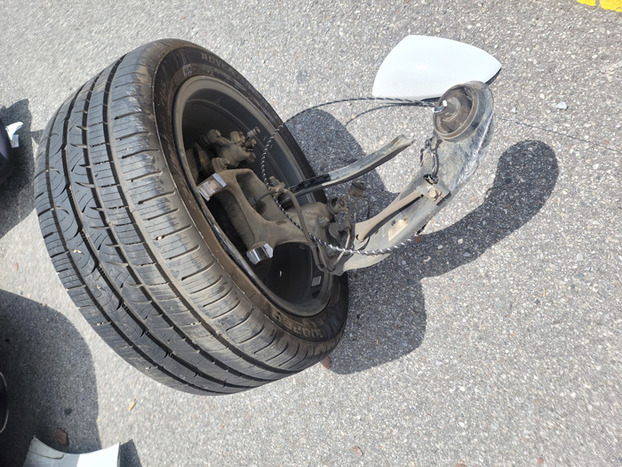 There were no injuries reported in a Tuesday wreck in Cantonment that left one vehicle in the median sitting on just three wheels.