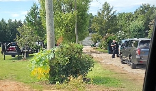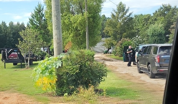 Pictured inset: The Escambia County Sheriff’s Office conducts their investigation Thursday morning in Walnut Hill. Exclusive photo for NorthEscambia.com, click to enlarge.
